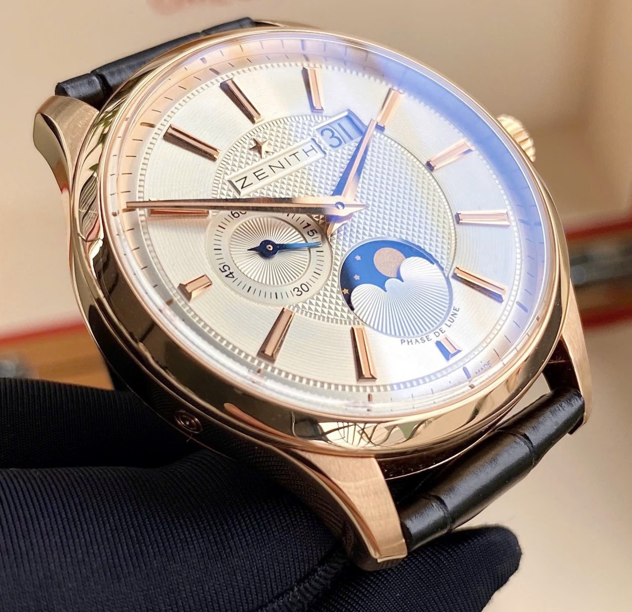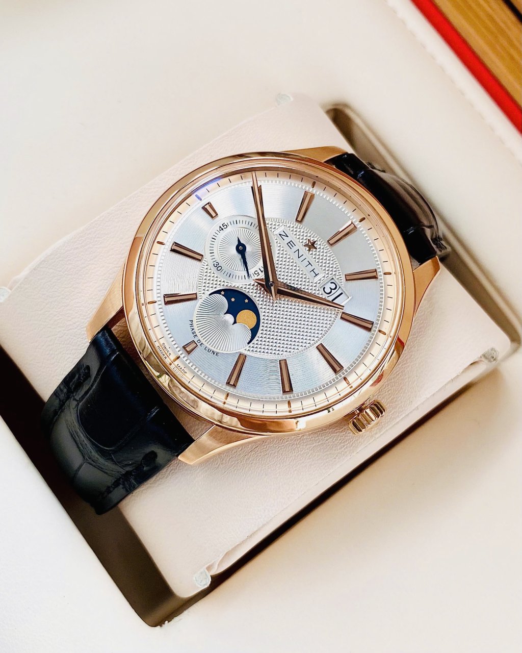 Zenith Elite Captain Moonphase, Ref: 18.2140.691/02.C498, Vàng hồng đúc 18k nguyên khối, Size 40mm, Like new fullbox, Giao lưu 189 triệu (Retail: ~ 450 triệu) ah