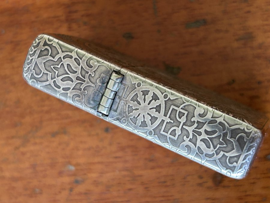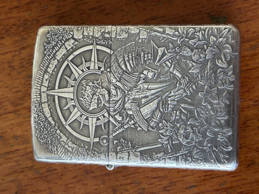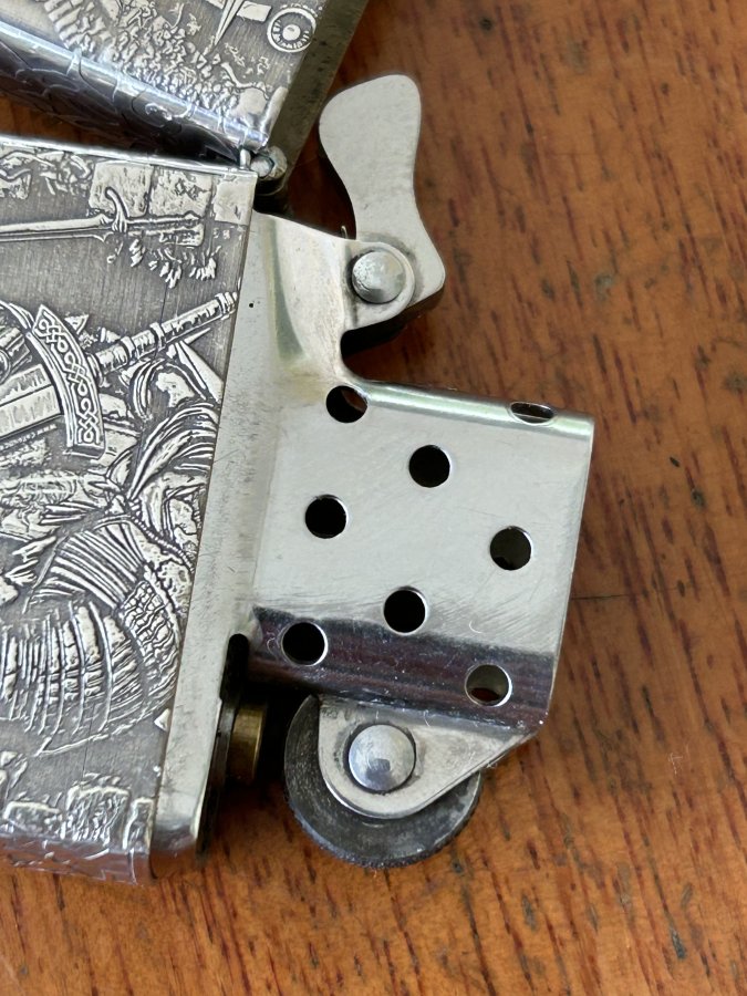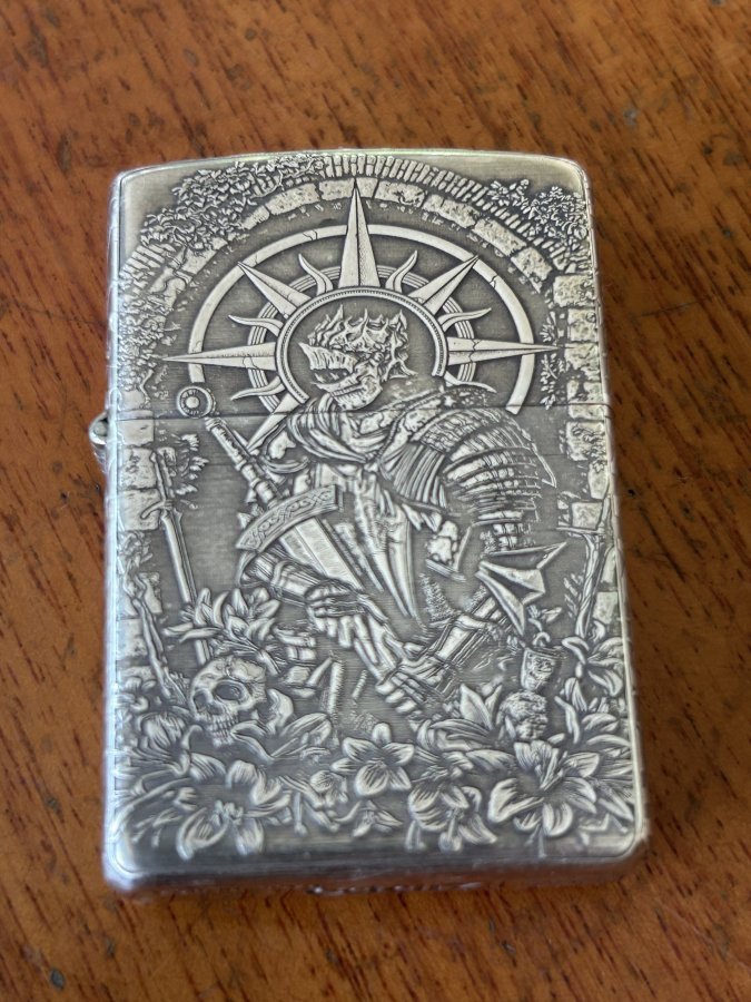 Bán 1 Zippo bạc đúc còn như mới. Zippo Cung Nhân Mã, được điêu khắc cả 6 mặt. Mặt trước Đao thủ, mặt sau Cung thủ, tất cả sắt nét, nguyên zin, vỏ 97, ruột 98